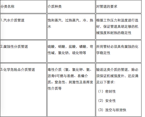 不同性質(zhì)的介質(zhì)對管道的要求不同,可參見(jiàn)表1-1-9。