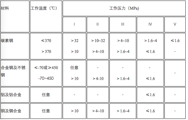 按照GBJ235-82的規定,這種分類(lèi)如表1-1-10。這是基于對管道工作狀態(tài)的可靠性和介質(zhì)的危險性的一種分類(lèi)方法。共分為五類(lèi)。